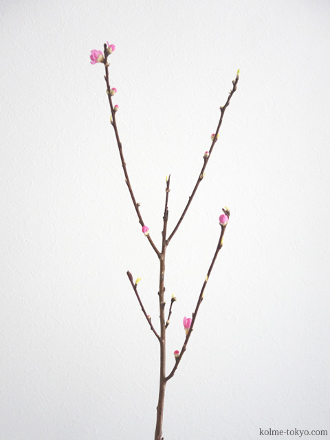 お花屋さんで売られているモモのほとんどは切り花用に開花を早めたもの。