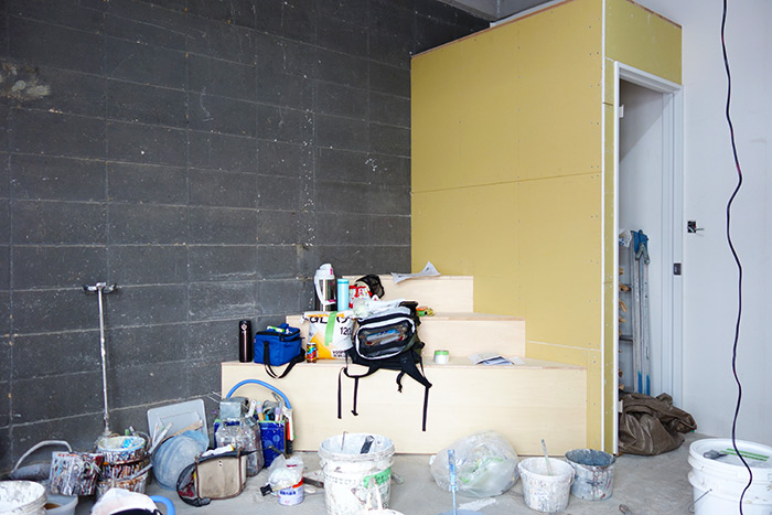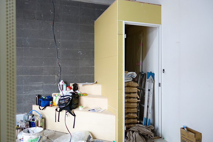 先週は断熱材むきだしだった壁に石膏ボードが貼られて