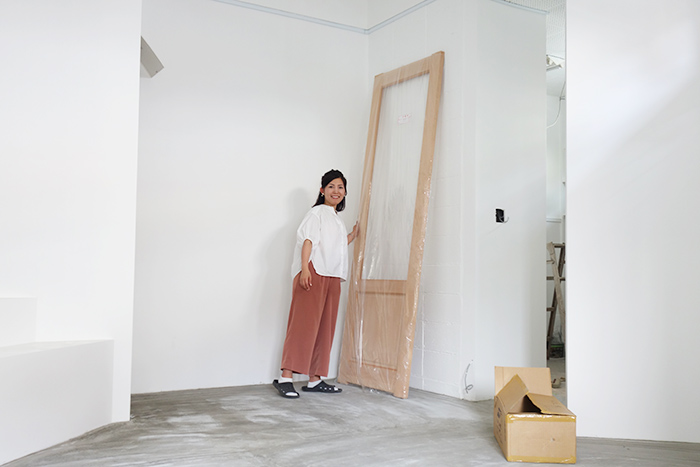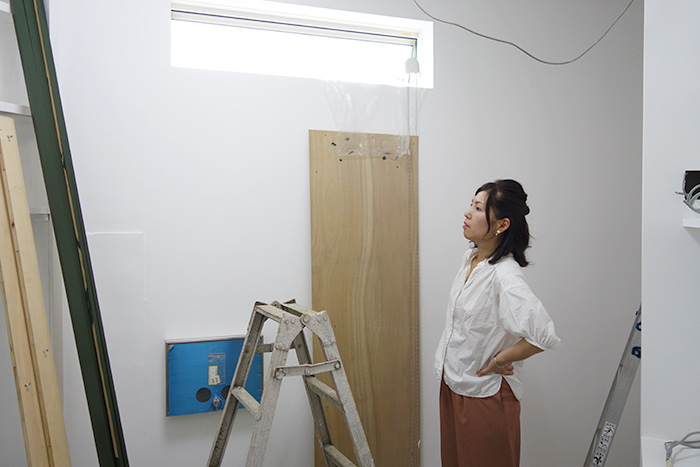 アトリエと事務スペースを区切る壁の所に、隙間を作ってもらいました。