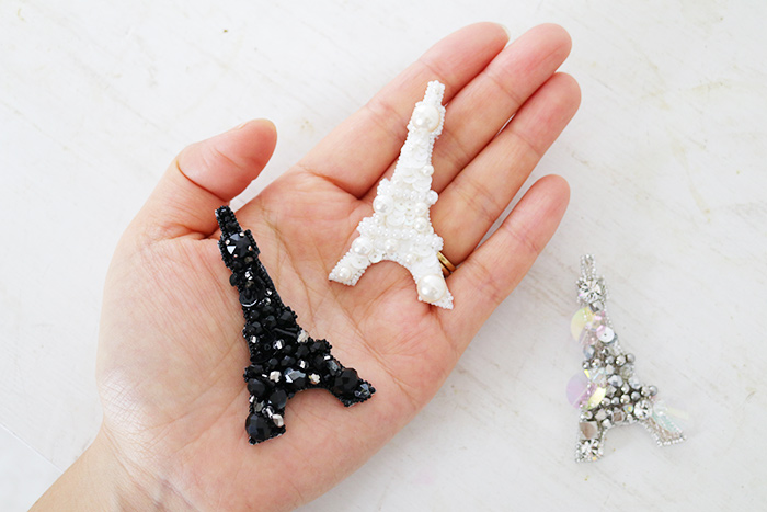 刺繍体験ではエッフェル塔モチーフのブローチを作ります。